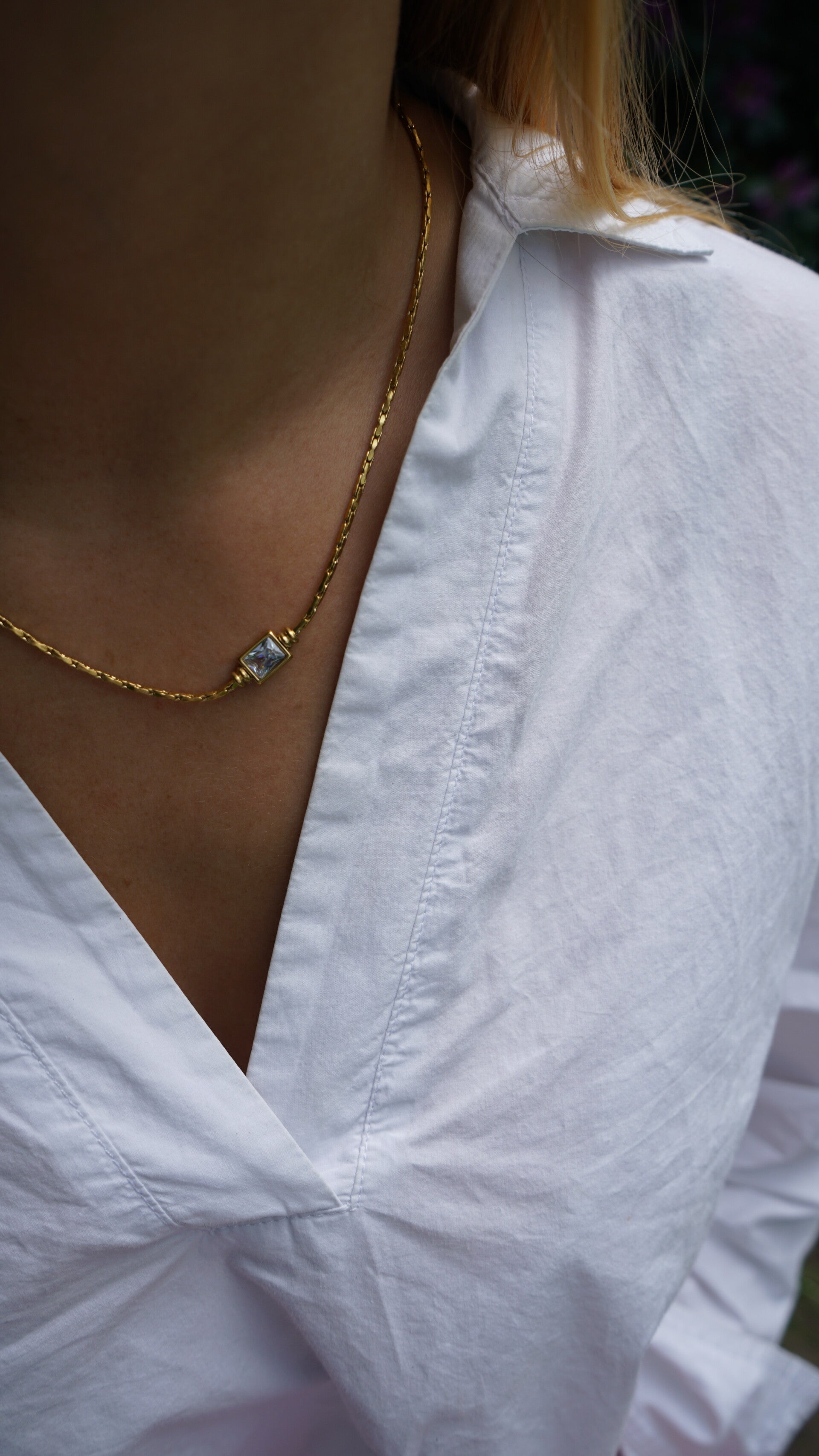 Met een klein maar schitterend diamantje aan een delicate gouden ketting, is dit sieraad het perfecte symbool van tijdloze schoonheid en subtiele luxe. Deze ketting is ontworpen voor vrouwen die houden van een minimalistische stijl met een vleugje sprankeling.